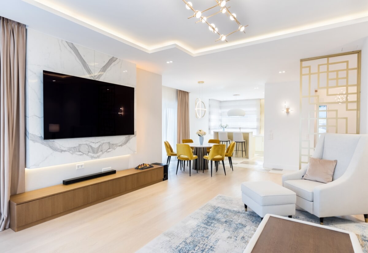 Un proiect elegant în care liniile clasice se împletesc cu detalii contemporane, într-un spațiu amplu și primitor.